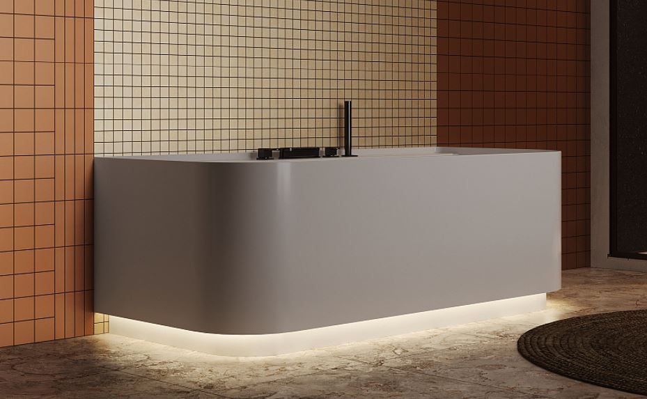 Отдельно стоящая ванна, с прекрасными эксплуатационными характеристиками: прочная конструкция, легкий уход, тихое наполнение, медленное остывание воды.