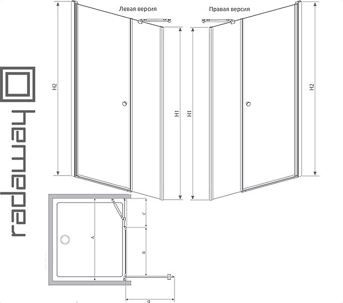 Купить для ванной в Минске с доставкой по Беларуси: Душевая дверь EOS DWS, Radaway, Pl., Одностворчатая распашная дверь в нишу и боковая стенка. Дверь открывается вовнутрь и наружу создавая широкий и удобный вход. Кабина доступна в правом и левом вариантах (на фото левый вариант). Характеристика серии Eos: - на все стекла стандартно наносится покрытие Easy Clean, которое помогает содержать кабину в чистоте; - безопасное калёное стекло толщиной 6 мм; - профильные петли, с подъемно-опускным механизмом и системой позиционирования двери; - дверь можно открывать как вовнутрь, так и наружу, получая благодаря этому широкий и удобный вход; - система пристенных профилей позволяет комепнсировать неровности стен до 10мм с каждой стороны; - элегантные хромированные детали; - прочные алюминеевые стабилизиторы гарантируют стабильную конструкцию кабины; - магнитные уплотнители обеспечают герметичность кабины. Кабины серии Eos допускается устанавливать как на поддоны, так и непосредственно на пол. В случае монтажа кабины непосредственно на полу, есть возможность заказа кабины без порога. В такой ситуации нижний горизонтальный уплотнитель выше. Можно заказать расширительные (П-образные) профиля. table td:first-child {text-align: left;}.tftable {font-size:2px; border: 0px; border-collapse: collapse;}.tftable th {font-size:14px;color:white;background-color:#6389a3;border-width: 1px; padding: 2px;border-style: solid;text-align:center;}.tftable tr {background-color:white; fontcolor:black;}.tftable td {font-size:14px; border-width: 1px;padding: 1px;border-style: solid;text-align:center;}.tftable tr:hover {background-color:#e36c0a;}            EOS DWS        A        B        C        D        H1        H2                DWS 100        990-1010        590        350        585        1950        1970                DWS 110        1090-1110        690        350        685        1950        1970                DWS 120        1190-1210        690        450        685        1950        1970                DWS 140        1390-1410        790        550        785        1950        1970            Кабина доступна в четырех вариантах стекла:    Гарантия 3 года от завода Производителя. Производитель: Radaway Ltd.Jasin, Rabowicka 59 Street62-020 Swarzedz.