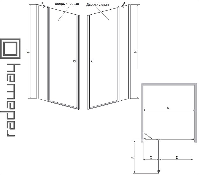 Купить для ванной в Минске с доставкой по Беларуси: Душевая дверь EOS II DWJ, Radaway, Pl., Одностворчатая распашная дверь. Дверь открывается внутрь и наружу создавая широкий и удобный вход. Кабина доступна в квадратной и прямоугольной версиях. Кабина доступна в правом и левом вариантах. Характеристика серии Eos II: - на все стекла стандартно наносится покрытие Easy Clean, которое помогает содержать кабину в чистоте; - безопасное калёное стекло толщиной 6 мм; - профильные петли, с подъемно-опускным механизмом и системой позиционирования двери; - дверь можно открывать как внутрь, так и наружу, получая благодаря этому широкий и удобный вход; - система пристенных профилей позволяет комепнсировать неровности стен до 10мм с каждой стороны; - элегантные хромированные детали; - прочные алюминеевые стабилизиторы гарантируют стабильную конструкцию кабины; - магнитные уплотнители обеспечают герметичность кабины. Кабины серии Eos II допускается устанавливать как на поддоны, так и непосредственно на пол. В случае монтажа кабины непосредственно на полу, есть возможность заказа кабины без порога. В такой ситуации нижний горизонтальный уплотнитель размером выше. Можно дополнительно заказать расширительные (П-образные) профили. table td:first-child {text-align: left;}.tftable {font-size:2px; border: 0px; border-collapse: collapse;}.tftable th {font-size:14px;color:white;background-color:#6389a3;border-width: 1px; padding: 2px;border-style: solid;text-align:center;}.tftable tr {background-color:white; fontcolor:black;}.tftable td {font-size:14px; border-width: 1px;padding: 1px;border-style: solid;text-align:center;}.tftable tr:hover {background-color:#e36c0a;}            EOS II DWJ        A        B        C        D        H                DWJ 80        790-810        480        250        495        1950                DWJ 90        890-910        580        250        595        1950                DWJ 100        990-1010        680        250        695        1950                DWJ 110        1090-1110        680        350        695        1950                DWJ 120        1190-1210        780        350        795        1950            Кабина доступна в четырех вариантах стекла:    Гарантия 3 года от завода Производителя. Производитель: Radaway Ltd.Jasin, Rabowicka 59 Street62-020 Swarzedz.