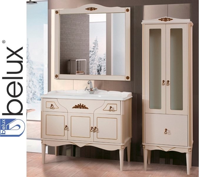Купить НАБОР Белюкс ВЕРДИ 1050 в ванную комнату, Слоновая кость с золотой патиной, с Доставкой по Беларуси. САЛОН МАГАЗИН в МИНСКЕ. Тумба ВЕРДИ Н 105-02, Белюкс, Беларусь. высота*ширина*глубина, 920*1089*495. с Умывальником КЛЕВЕР 1100, Белюкс, Беларусь. ширина*глубина, 1109*505. Зеркало ВЕРДИ В 105, Белюкс, Беларусь. высота*ширина*глубина, 1020*1080*22. * Цена указана за тумбу с умывальником и зеркало! * Добавьте любой шкаф и получите скидку! Мебель для ванной комнаты. Гарантия 2 года от завода Производителя.  • Ламинированная влагостойкая плита ДСП и МДФ Европейских производителей, по степени влагостойкости Р5 производства Kronospan (Польша). • Кромка ПВХ производства Rehau (Германия). • Высокоглянцевое лакокрасочное покрытие европейских производителей. • Лицевая фурнитура от MARELLA (Италия) и SYSTEM. • Направляющие для ящиков, крепёжная фурнитура и петли от Hettich (Германия), Blum (Австрия), Emuca S.A. (Испания), Italiana Ferramenta (Италия). Производитель: СП "БЕЛЮКС ЛТД", ООО Республика Беларусь, 222610, г. Жодино, Минская обл., ул. Кузнечная, 3.