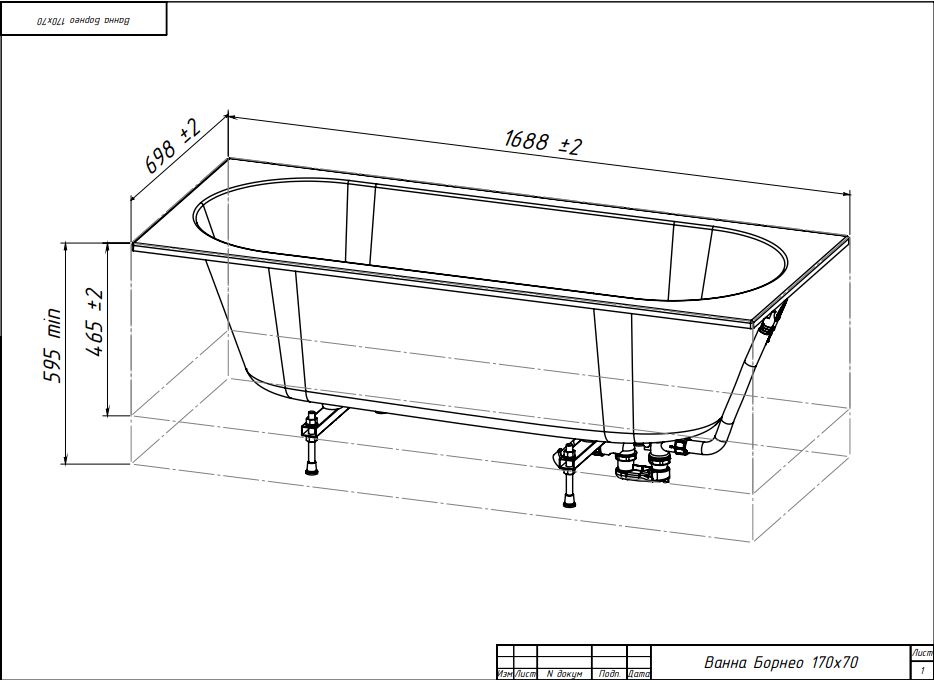 Длина 1688 мм, Ширина 698 мм. Допустимая погрешность в размерах: 2%.