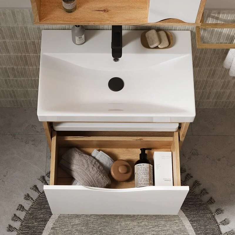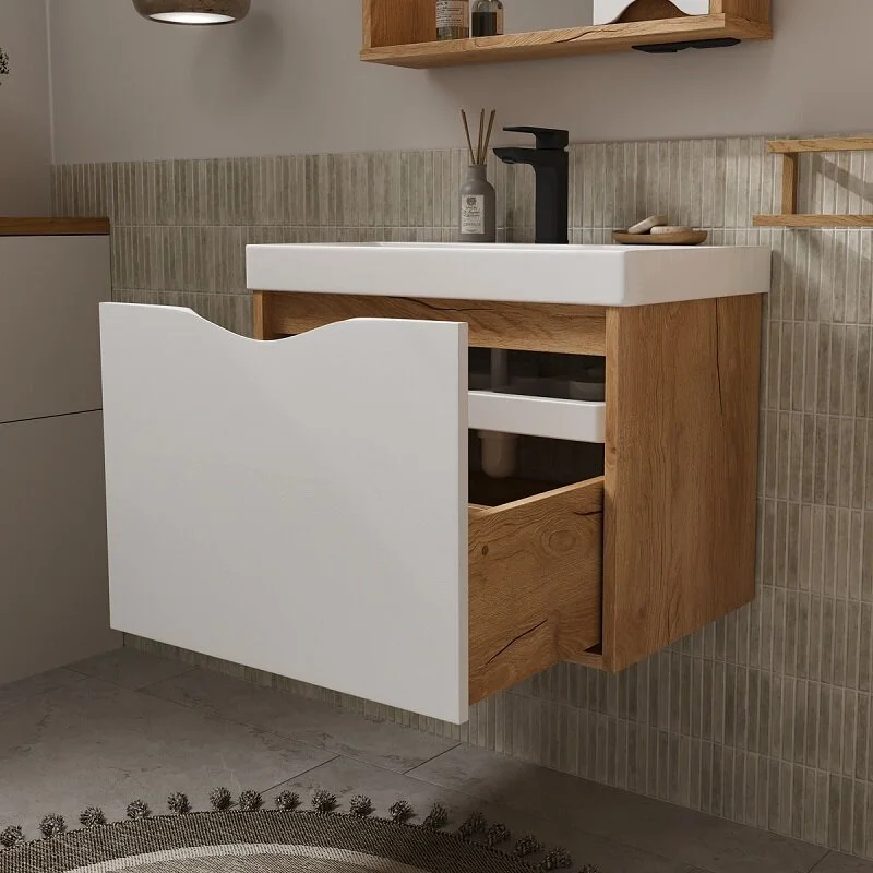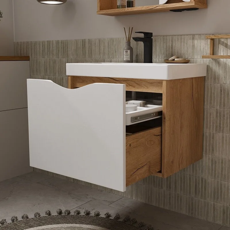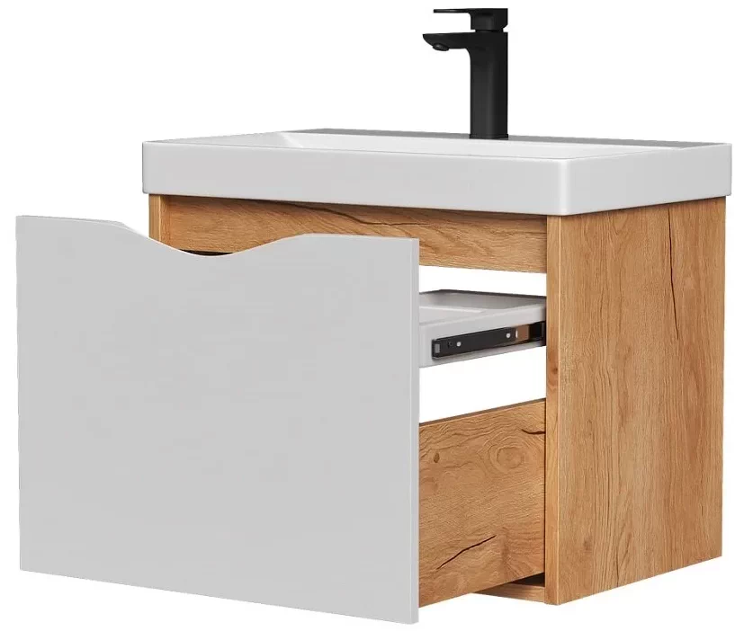 Тумба в ванную VOLNA подвесная Barney 60.1Y (9696) может дополнительно комплектоваться с раковиной Volna Lake 60 (9696) (ш*г, 610*395 мм.).