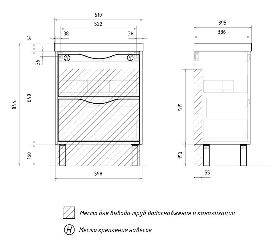 Тумба устанавливается на четыре опоры, дополнительно фиксируется к стене при помощи креплений.