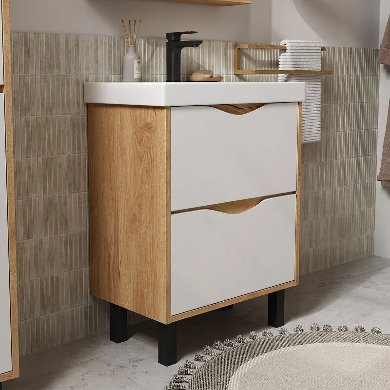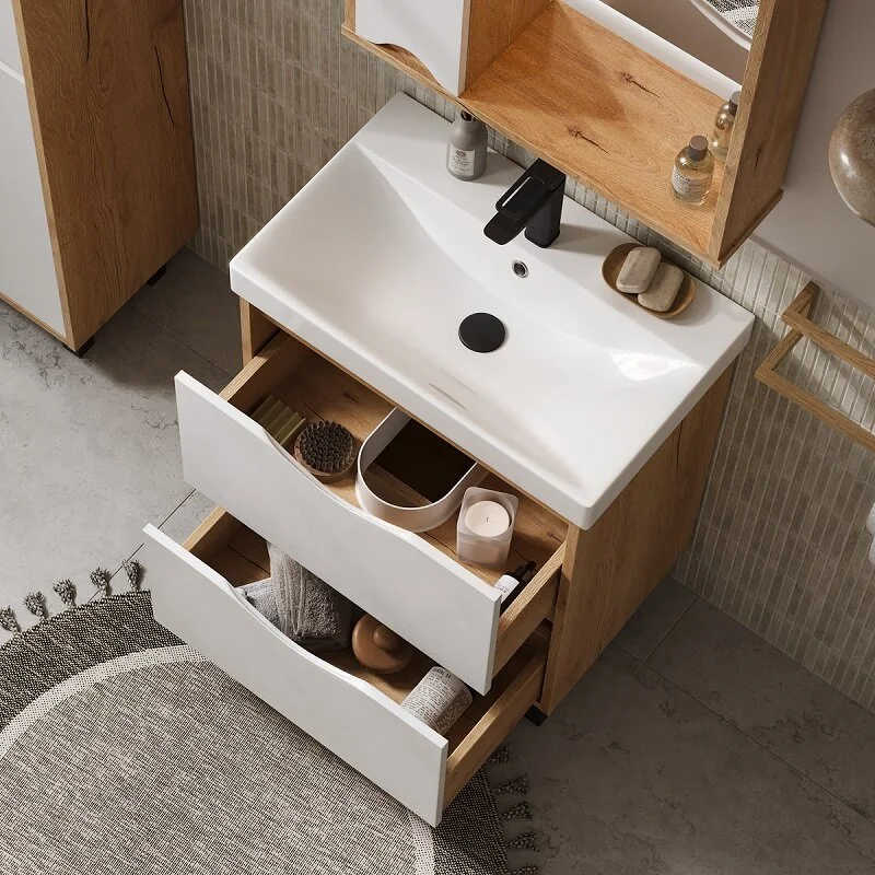 Тумба в ванную VOLNA напольная Barney 60.2Y (9696) может дополнительно комплектоваться с раковиной Volna Lake 60 (9696) (ш*г, 610*395 мм.).