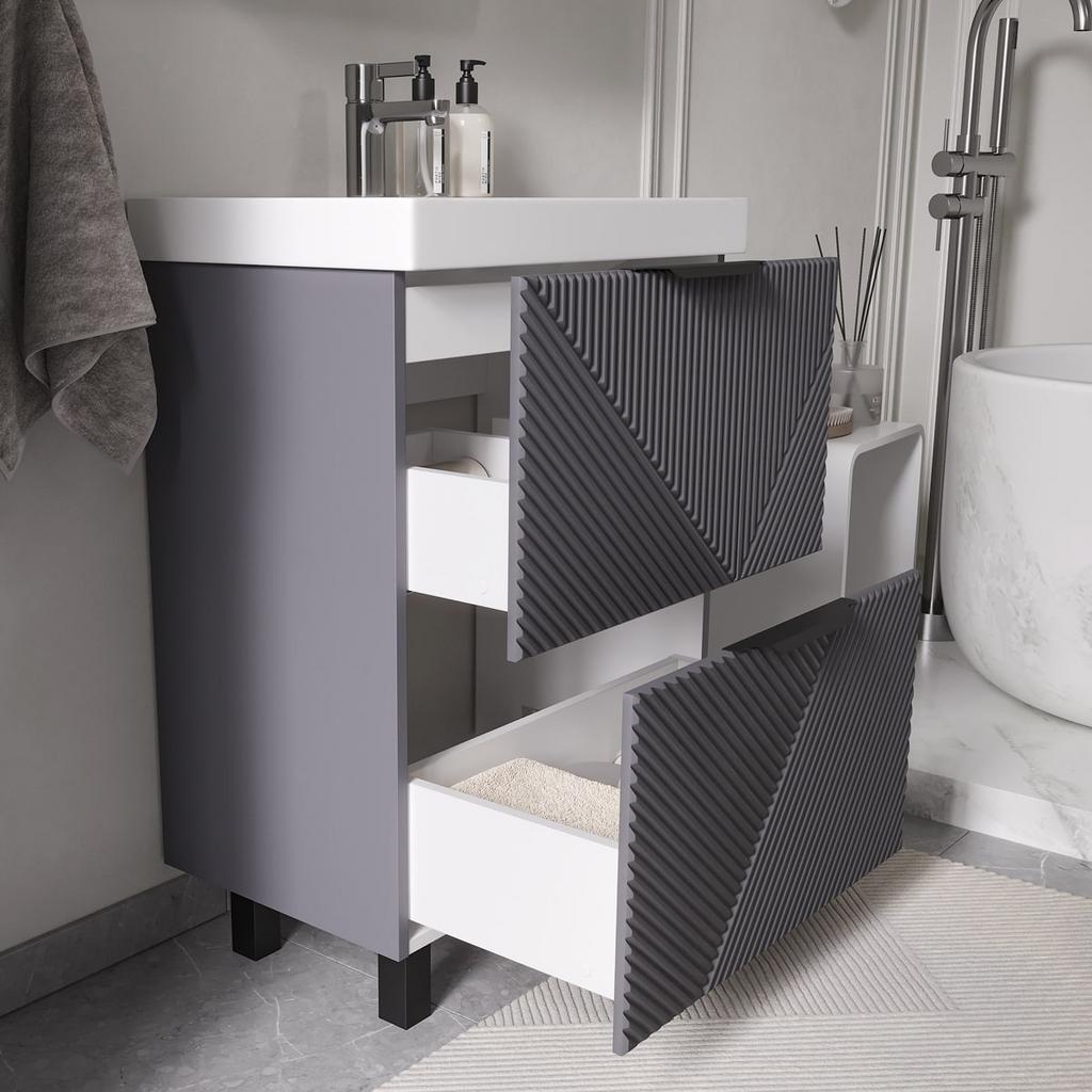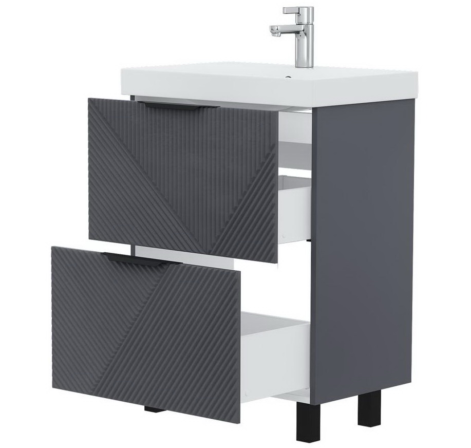 Тумба в ванную VOLNA напольная Geometry 60.2Y графит (9696) может дополнительно комплектоваться с раковиной Volna Lake 60 (9696) (ш*г, 610*395 мм.).
