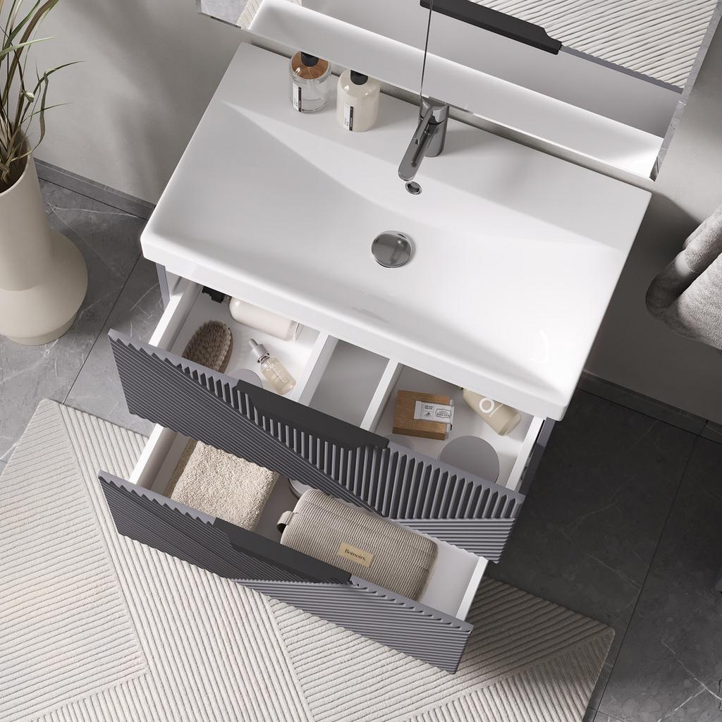Тумба в ванную VOLNA напольная Geometry 70.2Y графит (9696) может дополнительно комплектоваться с раковиной Volna Lake 70 (9696) (ш*г, 705*393 мм.).