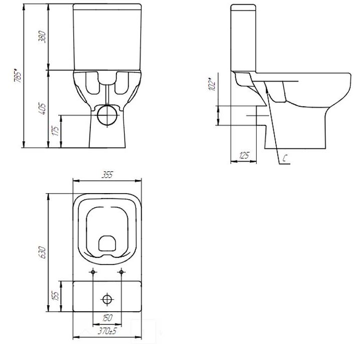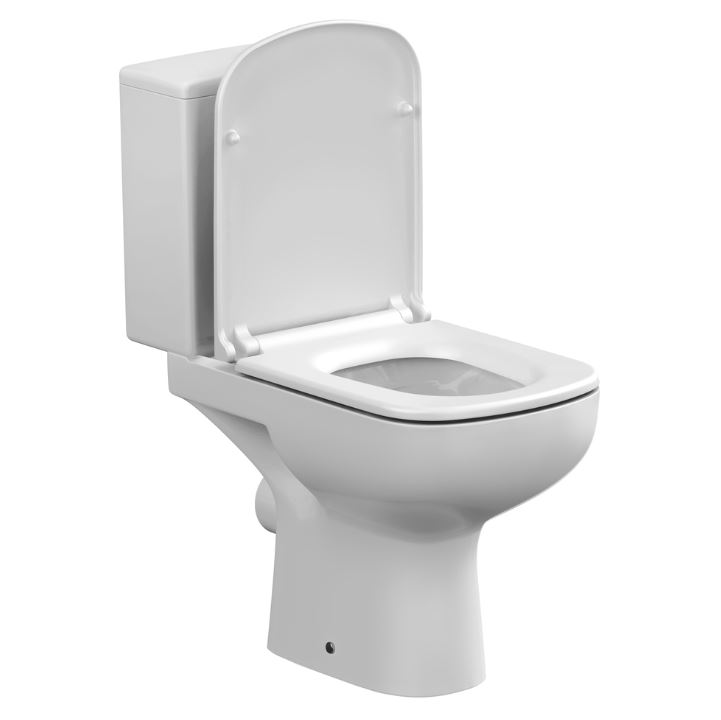 Унитаз Церсанит керамический безободковый (CleanOn), горизонтальный выпуск; бачок смывной с нижним подводом воды справа; двухуровневый спускной механизм; сиденье для унитаза из дюропласта, легкосъемное с функцией плавного закрывания; монтажный комплект.