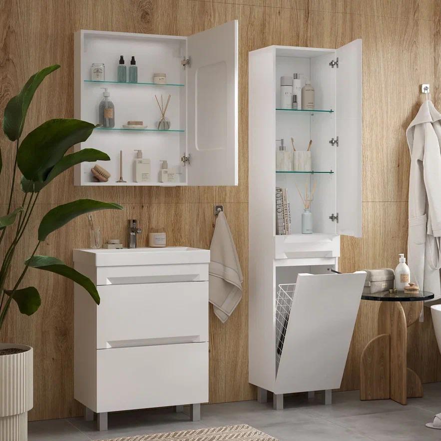 Шкаф с зеркалом Corner LED 60 изготовлен из влагостойких материалов: Фасад и корпус из МДФ, пленка ПВХ.