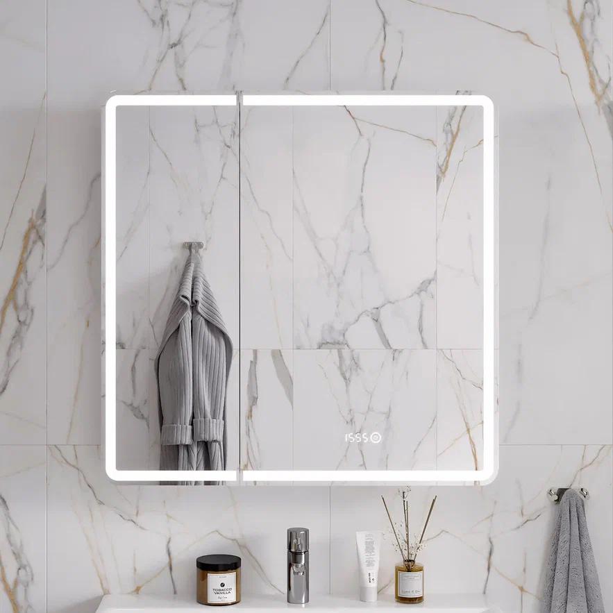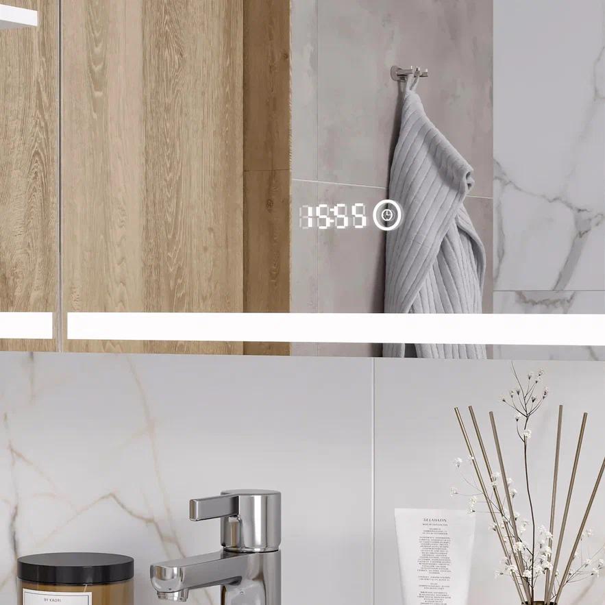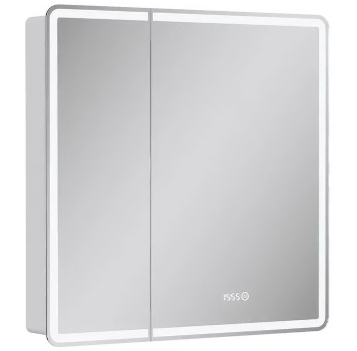 Зеркало оснащено светодиодной подсветкой, часами, розеткой, датчиком движения.