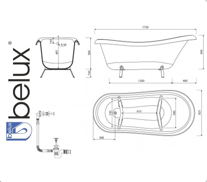 Комплектация ванны Belux Ладья ВЛА 1700: • ванна.