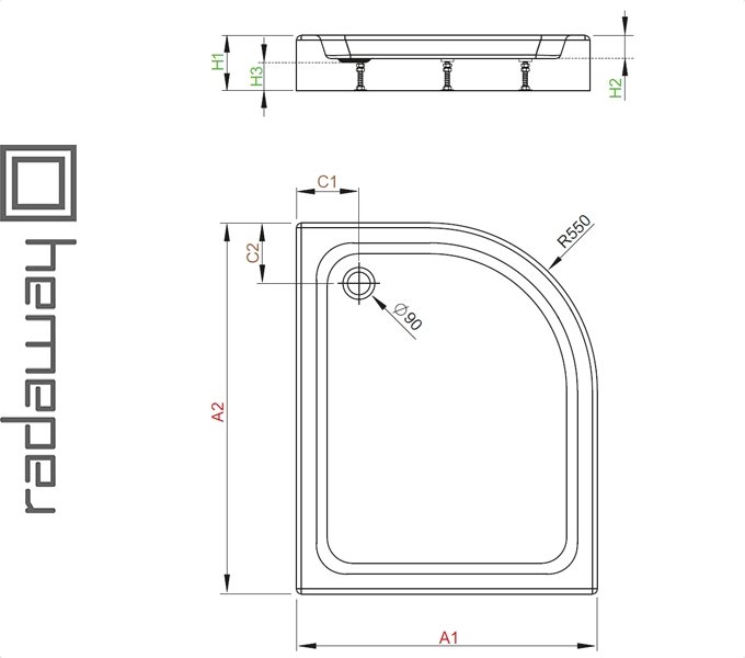 Купить для ванной в Минске с доставкой по Беларуси: Душевой поддон LAROS E, Radaway, Pl., правый, левый. Цельнолитой поддон, отверстие под сифон Ø 90 мм, ножки в комплекте, рекомендуемыe сифоны: TB90, TB21, 690. На рисунке представлена правая версия поддона. table td:first-child {text-align: left;}.tftable {font-size:2px; border: 0px; border-collapse: collapse;}.tftable th {font-size:14px;color:white;background-color:#6389a3;border-width: 1px; padding: 2px;border-style: solid;text-align:center;}.tftable tr {background-color:white; fontcolor:black;}.tftable td {font-size:14px; border-width: 1px;padding: 1px;border-style: solid;text-align:center;}.tftable tr:hover {background-color:#e36c0a;}            LAROS E        A1        A2    C1    C2    H1    H2    H3            1000×800        800        1000        180        180        170        55        90             Гарантия 3 года от завода Производителя. Производитель: Radaway Ltd.Jasin, Rabowicka 59 Street62-020 Swarzedz.