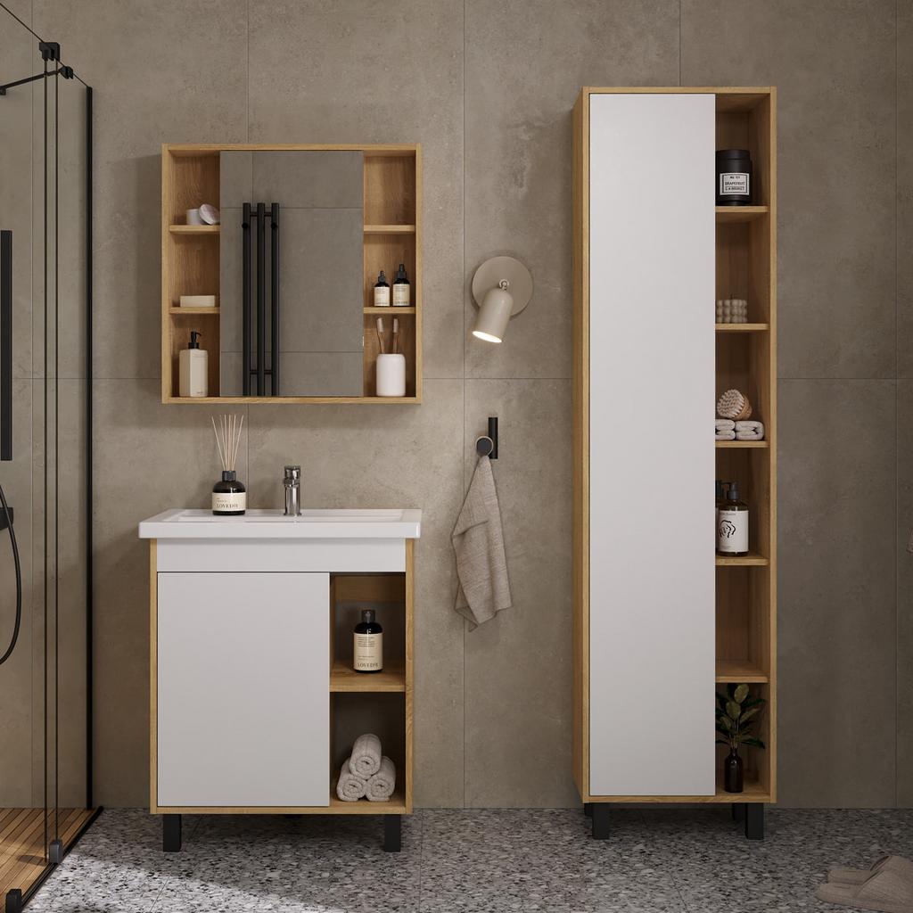 Пенал подвесной Mirage 36.R изготовлен из влагостойких материалов: двери из МДФ, корпус из ЛДСП.