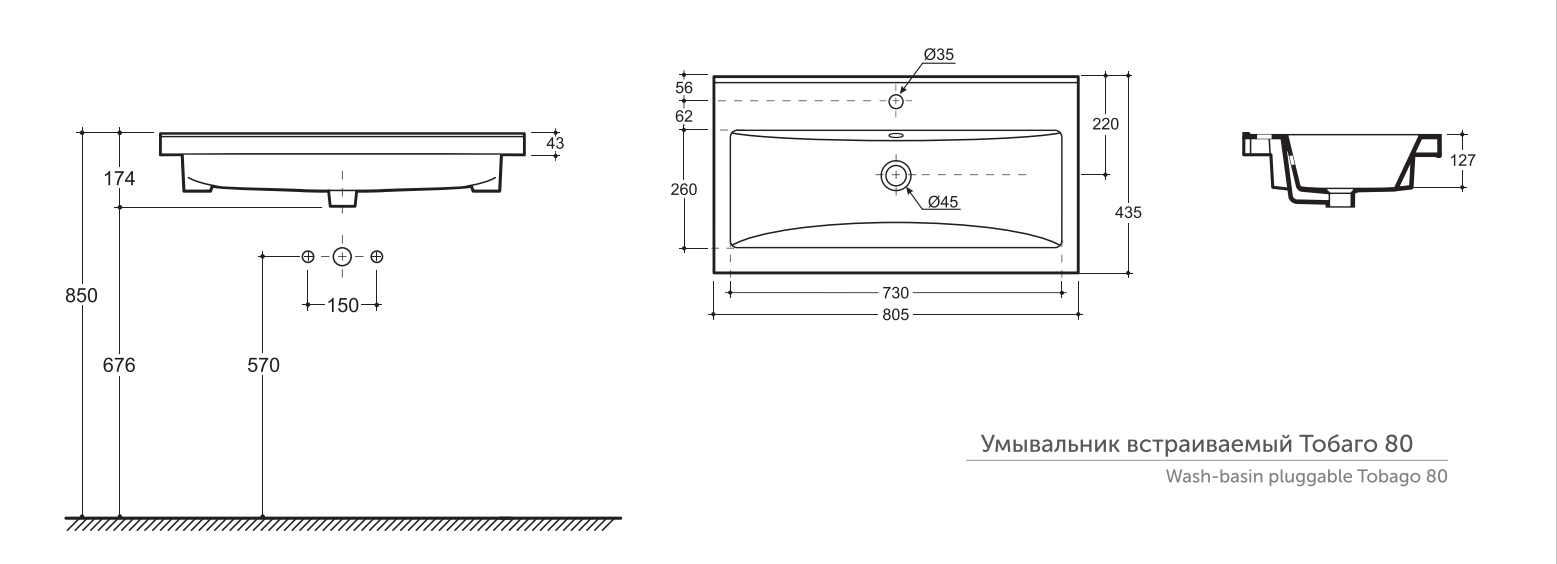 ЭРИДАН 80 Керамин умывальник мебельный к тумбе. (CDB00024887) |
