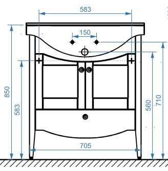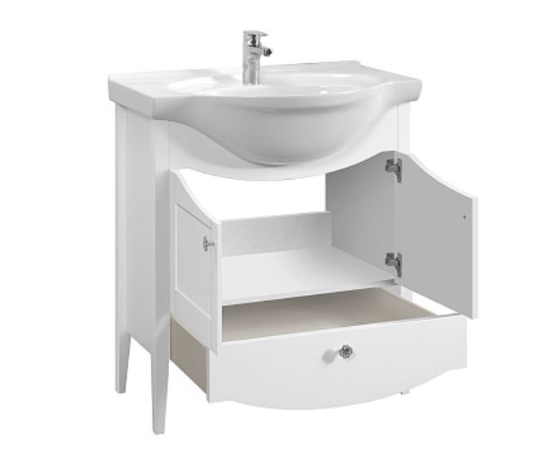 Тумба может дополнительно комплектоваться умывальником Керамин Капри 75, шириной 750 мм.