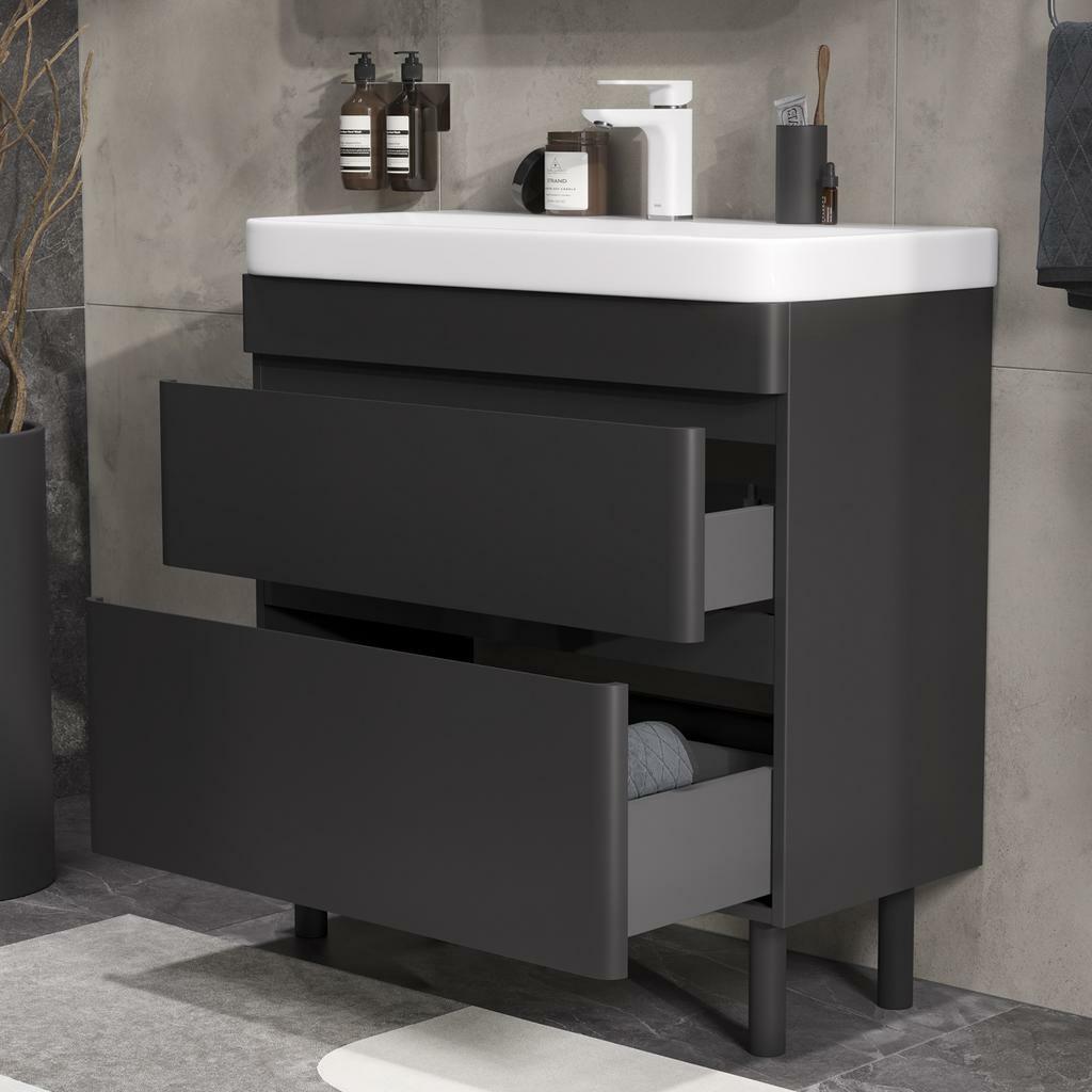 Тумба в ванную EQUIL напольная Eltoro 80.2Y (9595) может дополнительно комплектоваться с раковиной Nice 80 (ш*г, 810*390 мм.).