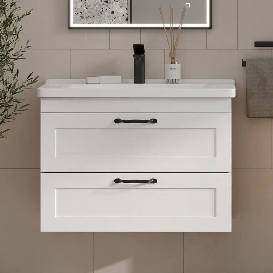 Тумба в ванную EQUIL подвесная Lago 80.2Y (Миранда/Фостер) может дополнительно комплектоваться с раковиной Santek Миранда 80 (ш*г, 805*455 мм.).