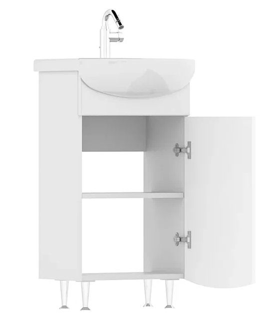 Фасад тумбы изготовлен из МДФ, облицован глянцевой пленкой ПВХ.