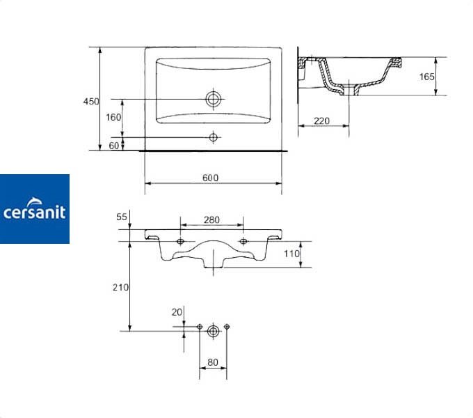 Купить КОМО 60, раковина Cersanit Умывальник мебельный к тумбе ширина*глубина, 600*450. Материал: Санитарная керамика. Гарантия 5 лет завода производителя. Производитель: "CERSANIT", Польша.