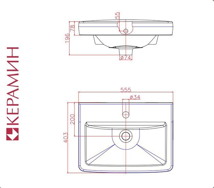 Купить МИЛАН 55, раковина Керамин Умывальник мебельный к тумбе ширина*глубина, 550 мм * 405 мм. Материал: Санитарный фарфор. Гарантия 5 лет завода производителя. Производитель: ОАО "Керамин", г.Минск, РБ.