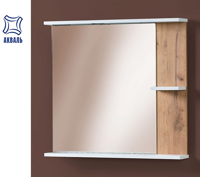 Купить для ванной в Минске с доставкой по Беларуси:  Зеркало ИРИС 75 в ванную комнату, Акваль, РБ., артикул (ИРИС.04.75.00.L),зеркальная полка, в*ш*г, 692*750*120 мм. Гарантия на мебель 2 года от завода Производителя. Производитель: ООО «Мебесон», Республика Беларусь, 220018, Минск, ул. Казинца И.П. д.121а-135.