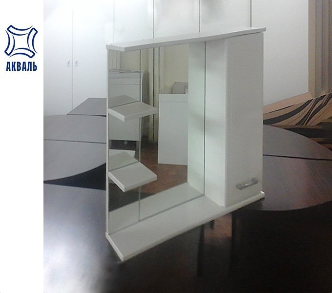 Купить для ванной в Минске с доставкой по Беларуси:  Зеркало НИКА 70 в ванную комнату, Акваль, РБ., артикул (ES.04.70.00.L/R), L/R, зеркальная полка со шкафчиком, полками, в*ш*г, 700*700*160 мм. Гарантия на мебель 2 года от завода Производителя. Производитель: ООО «Мебесон», Республика Беларусь, 220018, Минск, ул. Казинца И.П. д.121а-135.
