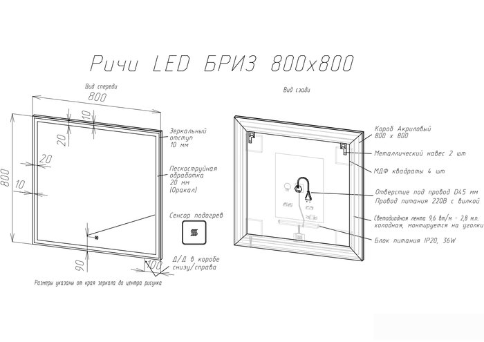 | Информация | Led-зеркало с функцией подогрева. Бесконтактный датчик вкл/выкл. Быстрый монтаж. |