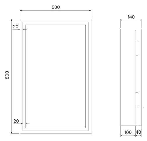 Габариты: ш*г*в, 500х160х800 мм.