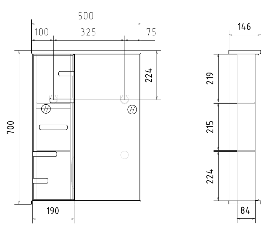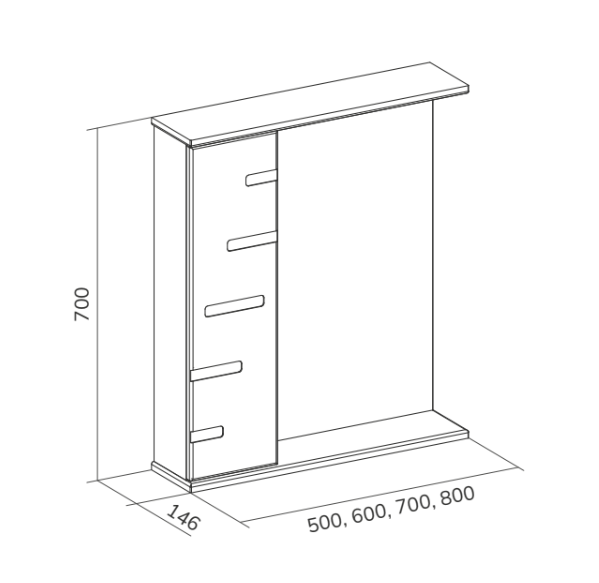 Габариты: ш*г*в, 500х146х700 мм.