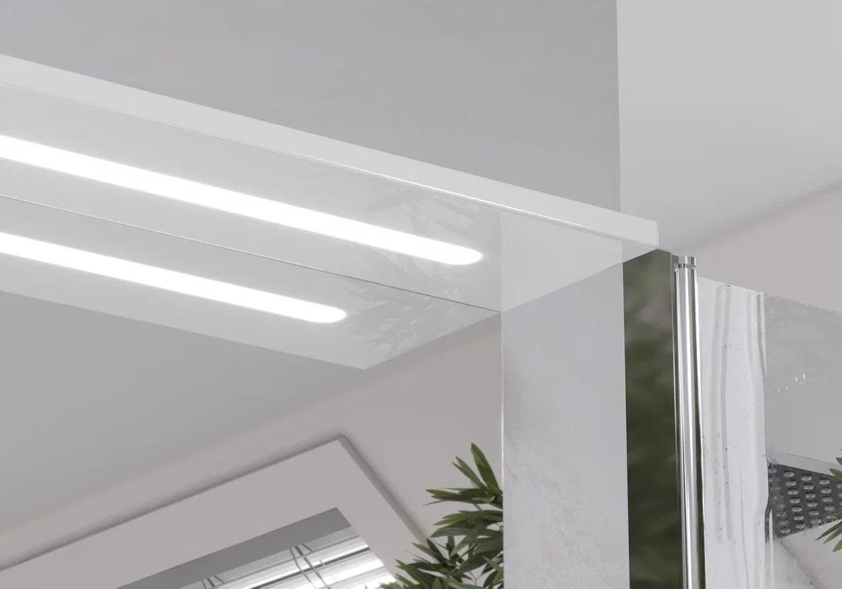 Зеркало оснащено светодиодной подсветкой, розеткой и выключателем.