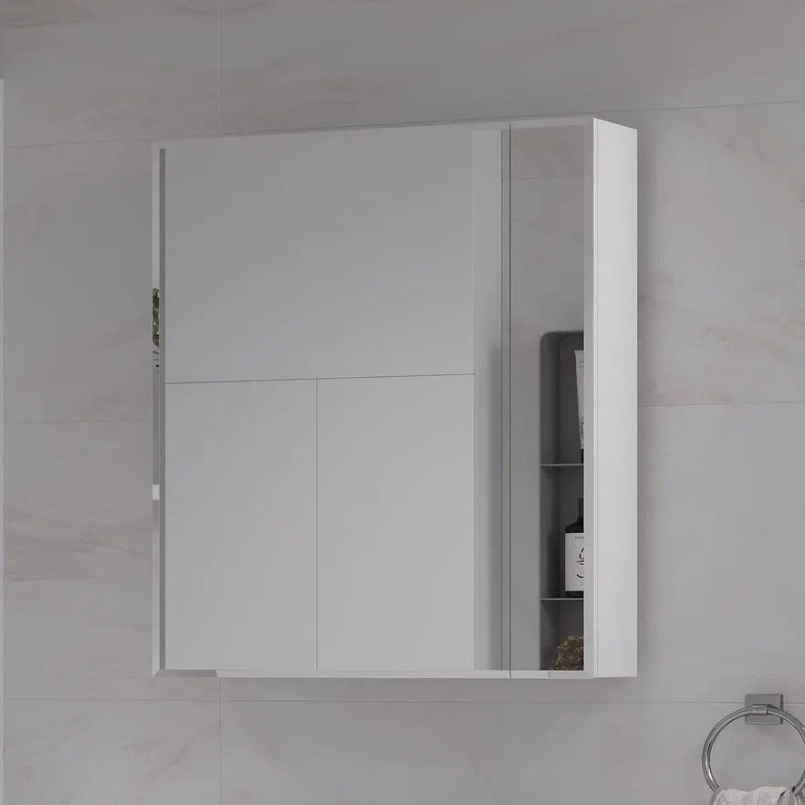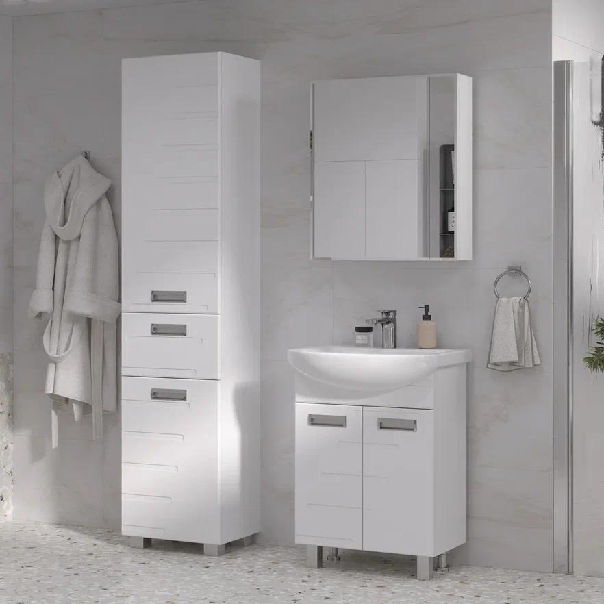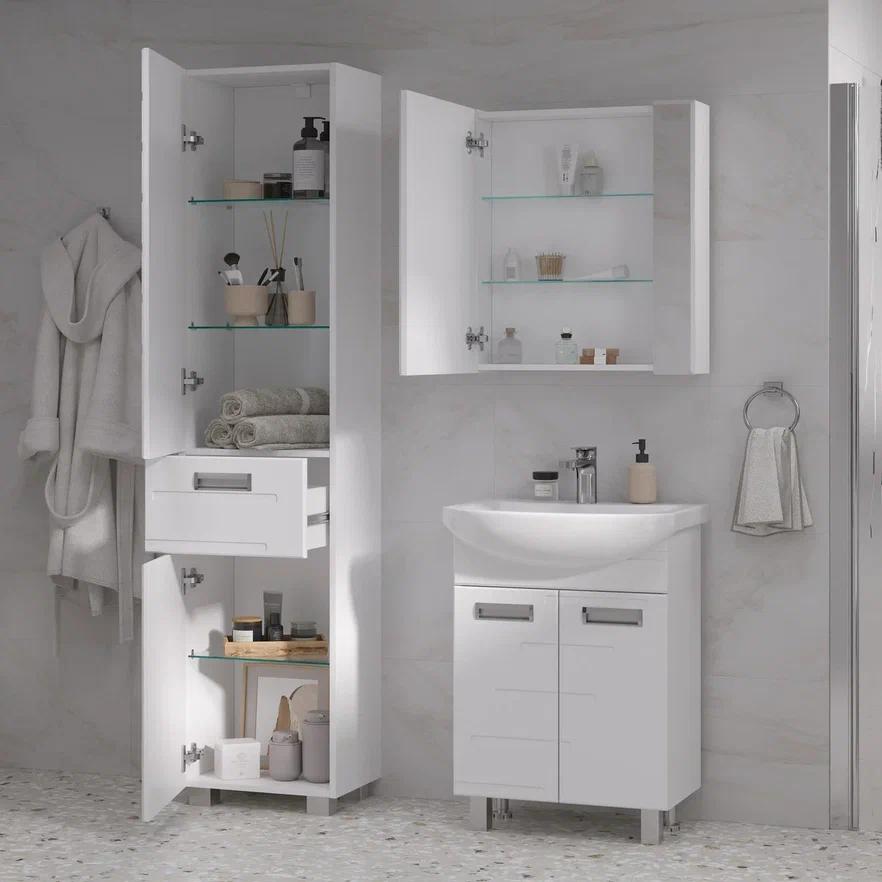 Шкаф с зеркалом Joli 55 изготовлен из влагостойких материалов: Фасад из МДФ, покрыт глянцевой пленкой ПВХ, корпус из ЛДСП.