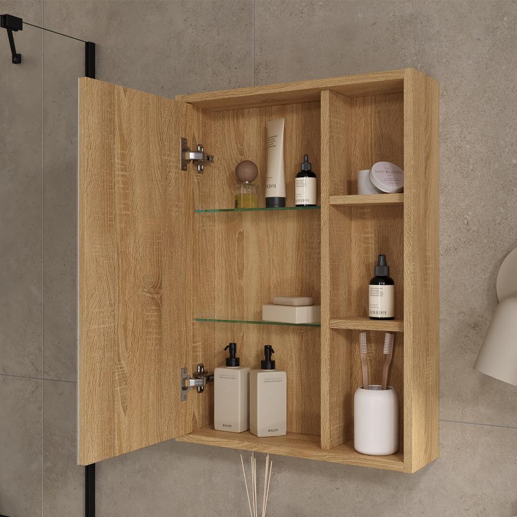 Шкаф с зеркалом Osmond 50 изготовлено из влагостойких материалов: Корпус ЛДСП, фасад ЛДСП с зеркальным полотном.
