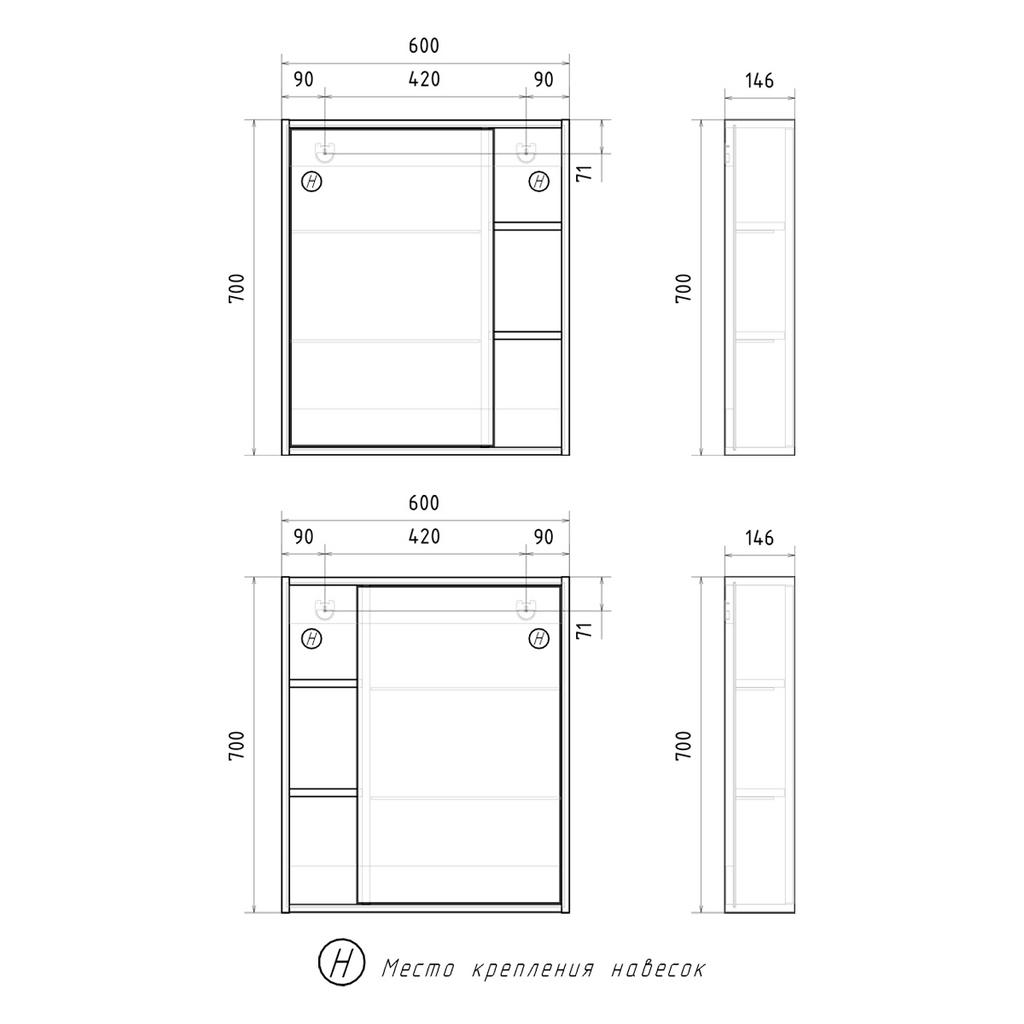 Габариты: ш*г*в, 600х146х700 мм.