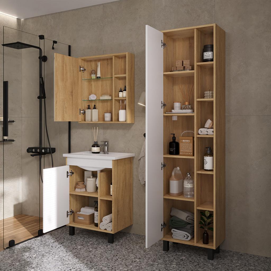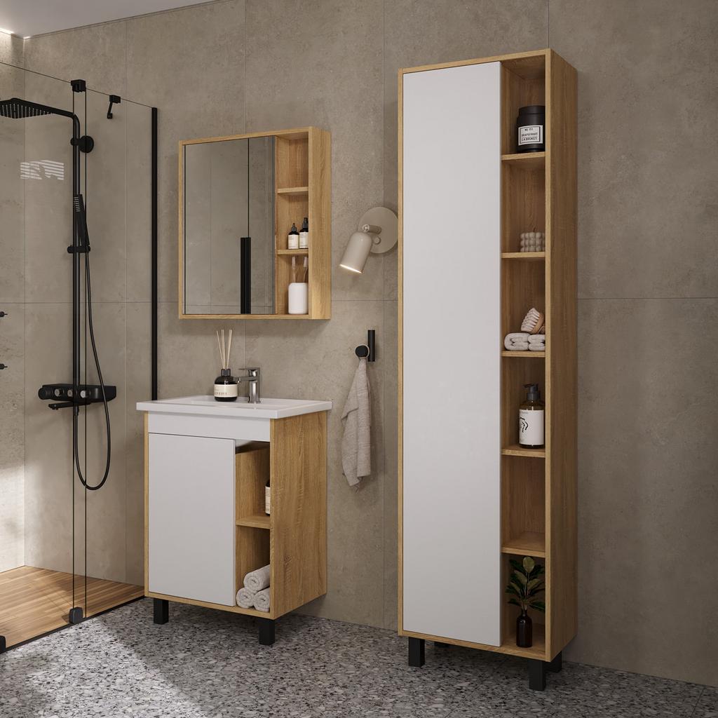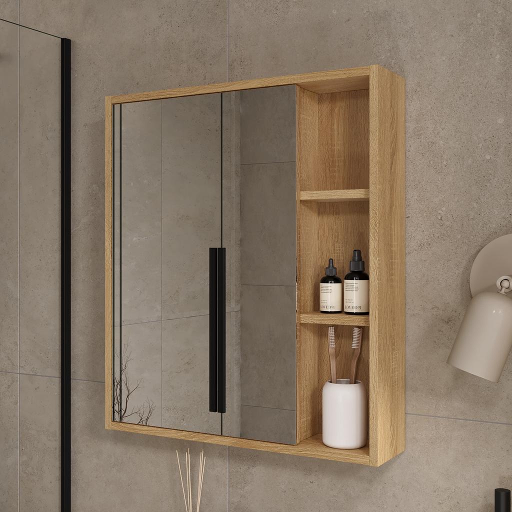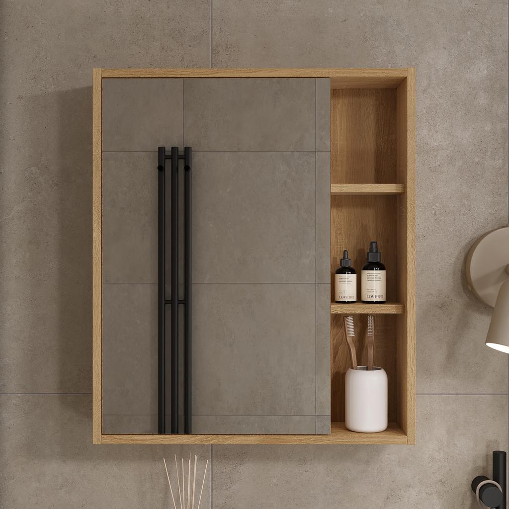 Шкаф с зеркалом Osmond 60 изготовлено из влагостойких материалов: Корпус ЛДСП, фасад ЛДСП с зеркальным полотном.