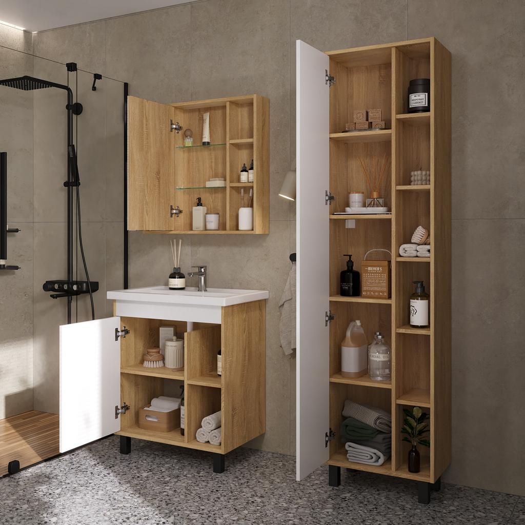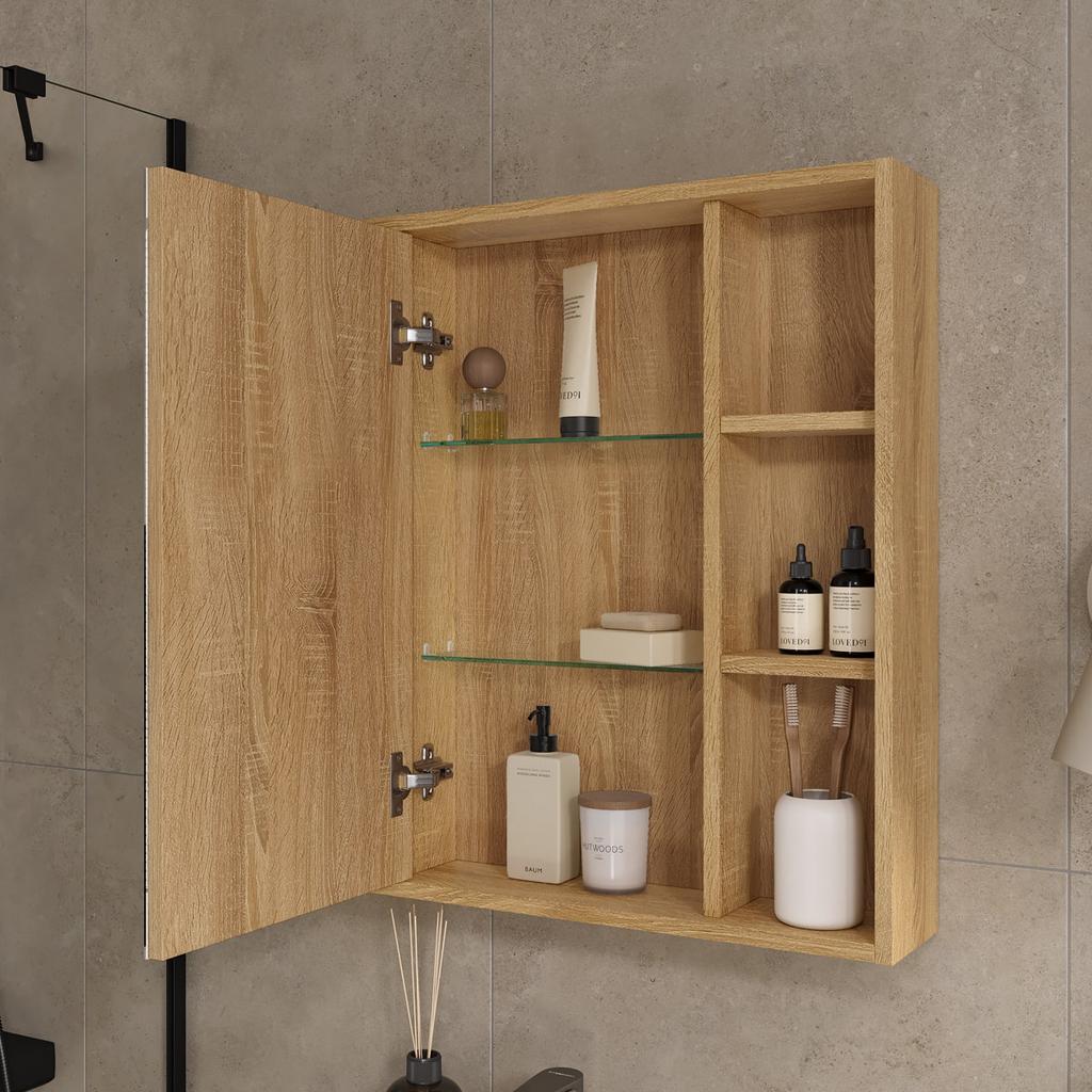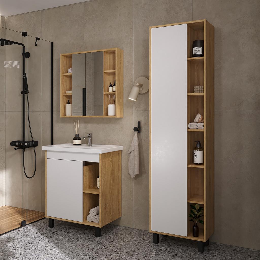 Шкаф с зеркалом Osmond 70 изготовлено из влагостойких материалов: Корпус ЛДСП, фасад ЛДСП с зеркальным полотном.