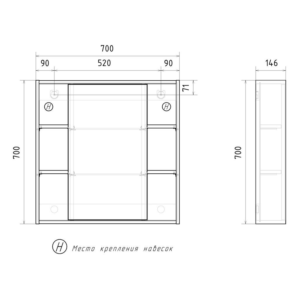 Габариты: ш*г*в, 700х146х700 мм.