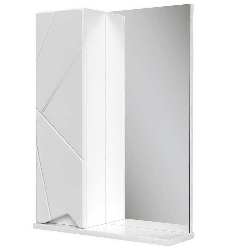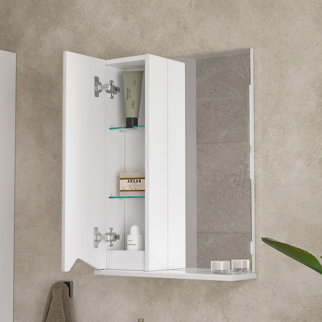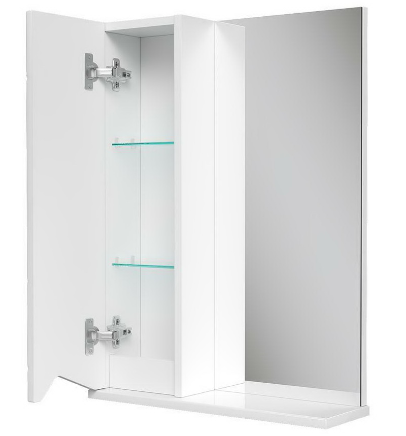 Конструкция: Зеркальный шкаф в ванную VOLNA Pronto 50, с распашным отделением и открытой полкой.