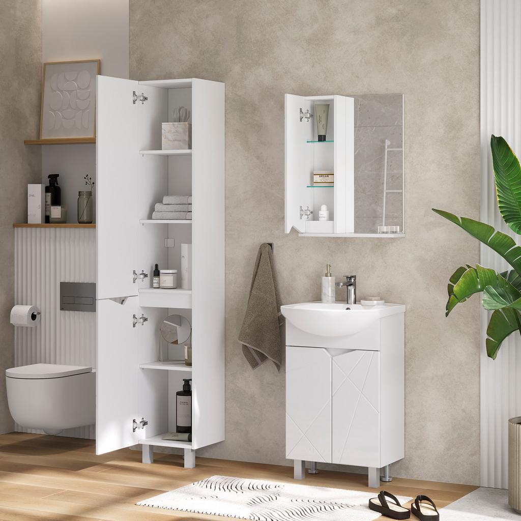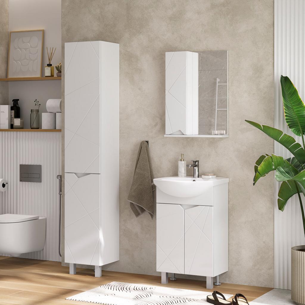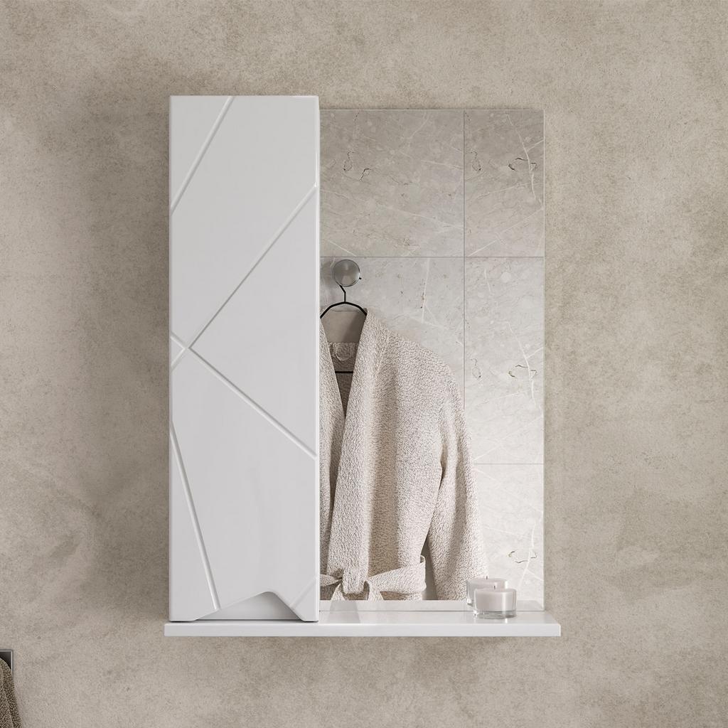 Шкаф с зеркалом Pronto 50 изготовлен из влагостойких материалов: МДФ с оригинальной фрезеровкой, покрыт глянцевой пленкой ПВХ.