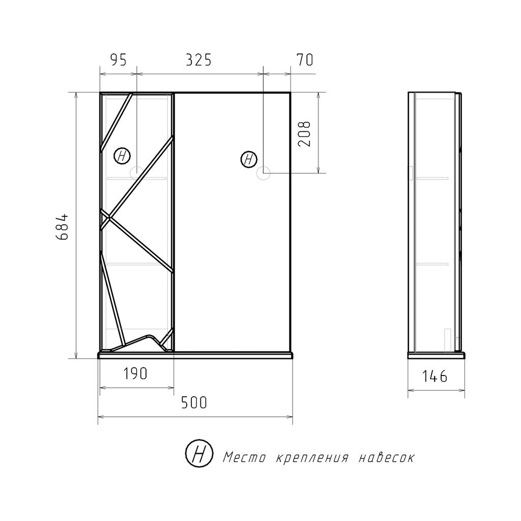Габариты: ш*г*в, 500х146х684 мм.