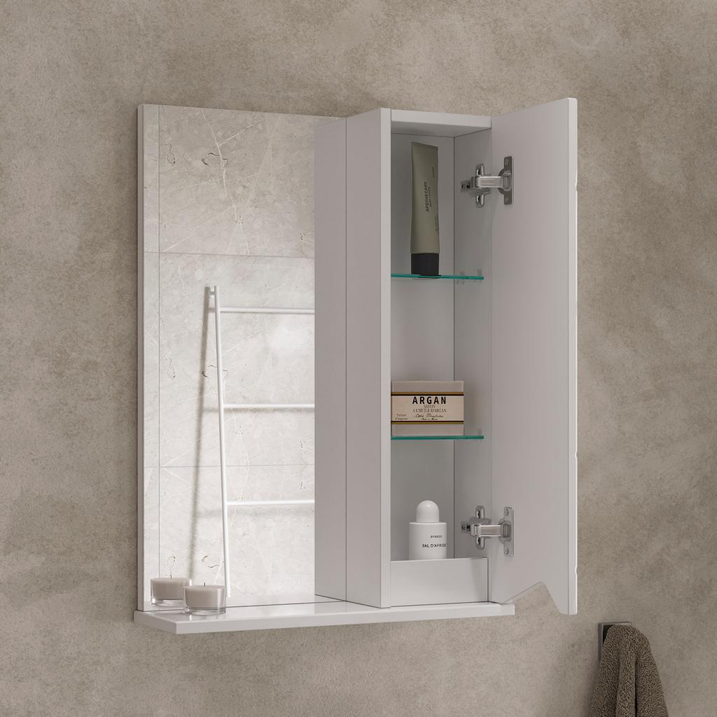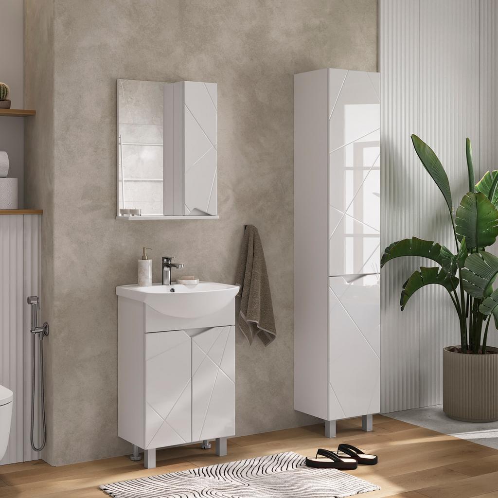 Шкаф с зеркалом Pronto 50 изготовлен из влагостойких материалов: МДФ с оригинальной фрезеровкой, покрыт глянцевой пленкой ПВХ.