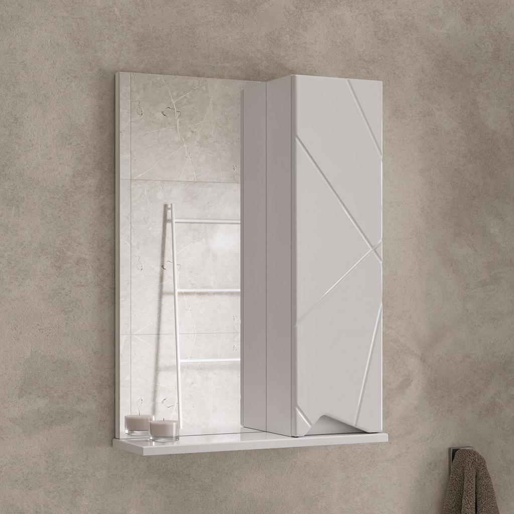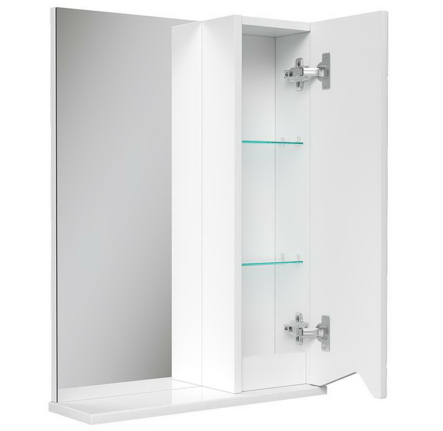 Конструкция: Зеркальный шкаф в ванную VOLNA Pronto 50, с распашным отделением и открытой полкой.